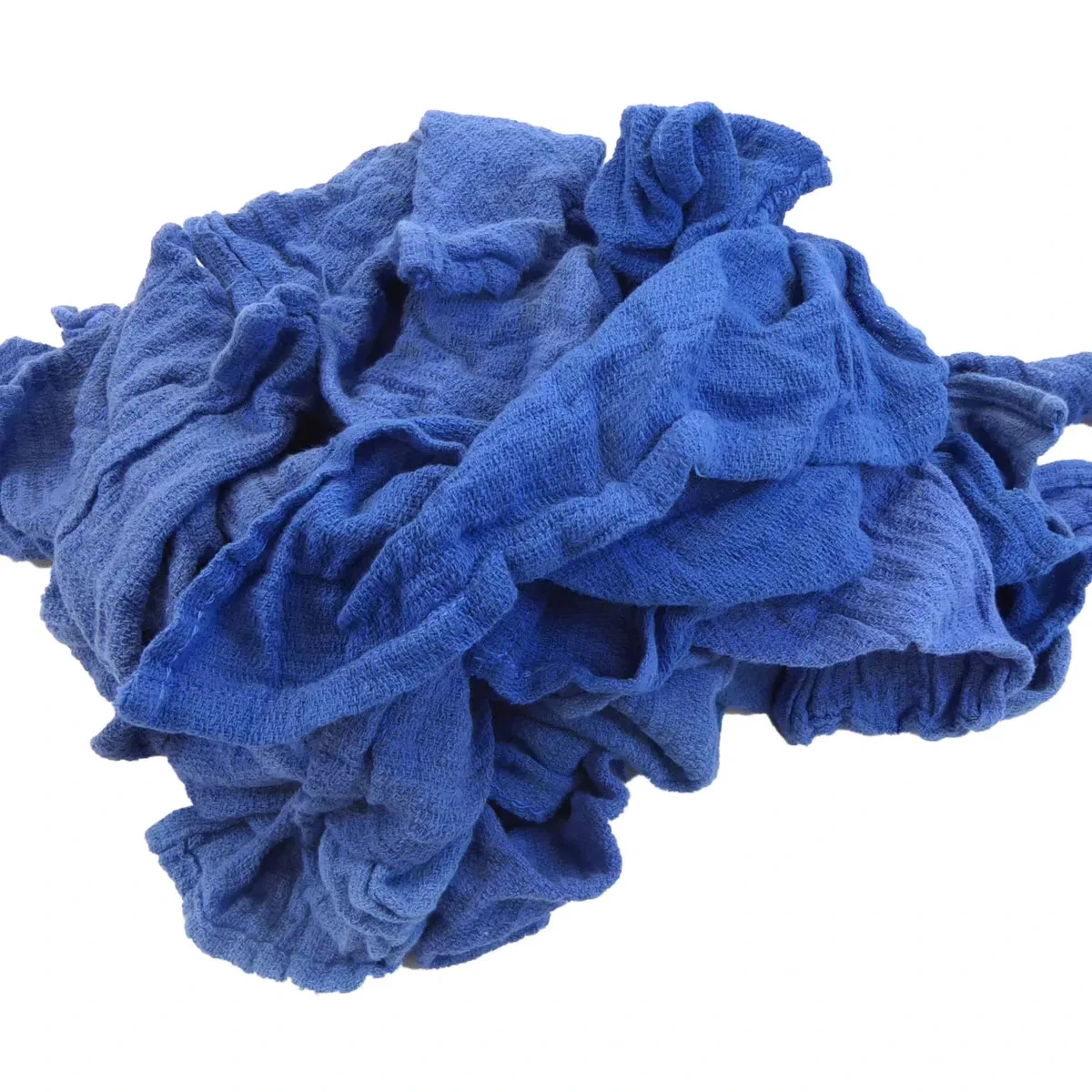 Okey Rags’ Recycled Blue Surgical Huck Rags are heavy-duty, prewashed cotton cleaning rags made from recycled material — ideal for commercial and industrial cleaning tasks.
